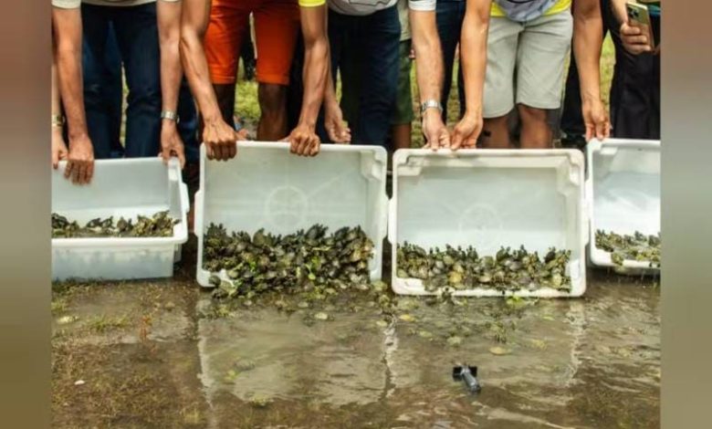 1.200 filhotes de quelônios são soltos na comunidade Correio do Tapará, no Rio Amazonas