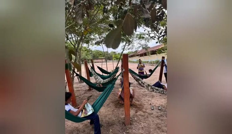 Amazonense instala redário de leitura em escola da comunidade Prainha do Maró, em Santarém