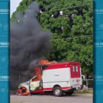 Ambulância de Marapanim pega fogo na PA-318, no nordeste do Pará