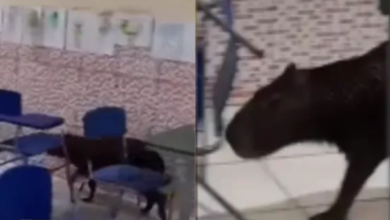 Uma capivara foi encontrada dentro de uma sala de aula em uma escola na região de Bragança, no Pará. A…