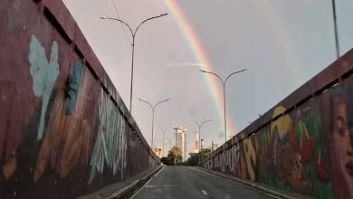A cidade de São Paulo amanheceu nesta terça-feira (7) com um arco-íris duplo após a chuva na madrugada e surpreendeu…