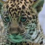 Com pouco mais de três meses, o filhote de onça-pintada permanece na área de manejo, sob os cuidados da mãe, longe da exposição pública.