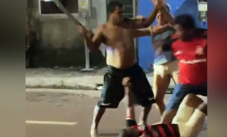 Um homem identificado como Joel foi encaminhado à delegacia na noite de domingo (25) após ferir outro homem com um facão durante uma briga ocorrida na travessa 15 de Agosto com a Quinta Rua, em Itaituba.