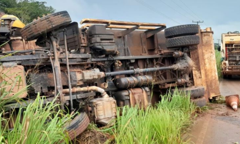 De acordo com informações repassadas pelo motorista, o acidente ocorreu após ele tentar desviar de um veículo que trafegava no sentido contrário. Durante a manobra, o condutor perdeu o controle da direção, fazendo com que o caminhão tombasse fora da pista.