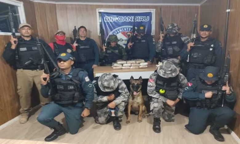 O cão farejador Tupã localizou mais de 12 KG de drogas durante fiscalizações na Base Integrada Fluvial Candiru em Óbidos, no oeste do Pará. A abordagem e apreensão do material entorpecente aconteceu no domingo (19) por volta das 17h30.