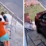 As imagens mostram Andreza Vitoriano conversando tranquilamente com as crianças — seu filho e dois sobrinhos — quando o veículo avança repentinamente em direção à calçada. Por poucos segundos, a tragédia não se concretizou. Ninguém ficou ferido, mas o susto foi enorme.