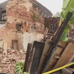Cachorro aguarda resgate sob escombros de casarão desmoronado