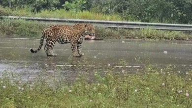 Onça-pintada ataca motociclista e mata cachorro em estrada