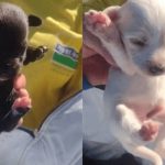 Coletores salvam filhotes de cachorro antes de compactação em caminhão de lixo em SP