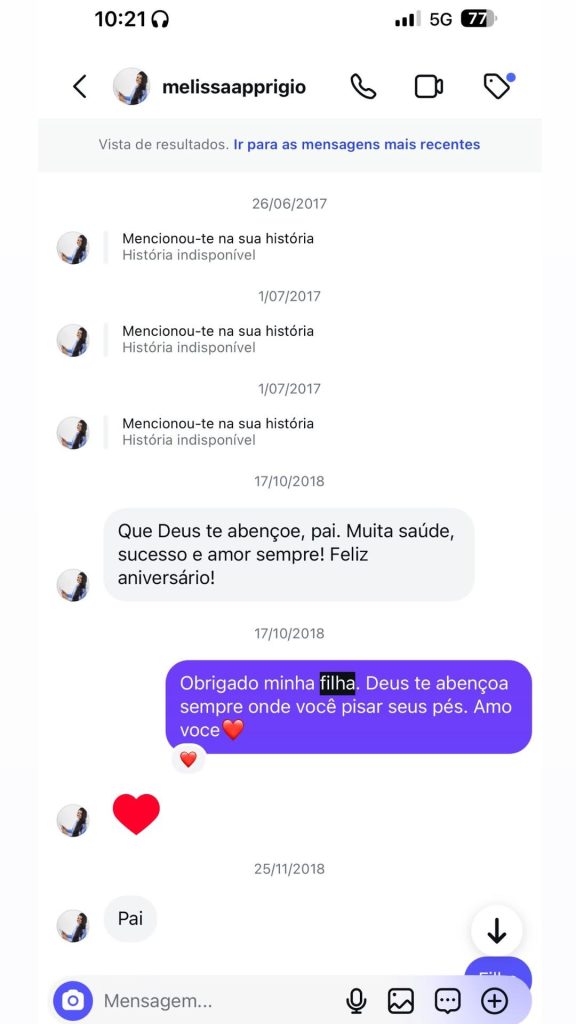 Os prints divulgados pelo cantor mostram diálogos considerados cordiais entre ele e as filhas. Entre os conteúdos estão conversas sobre viagens, felicitações de aniversário e interações do cotidiano.