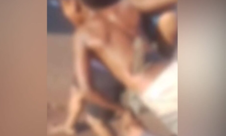 Imagens que circulam nas redes sociais mostram o momento do resgate. A criança grita desesperada enquanto moradores o carregam com a estaca presa ao corpo.
