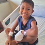 “A mão dele estava começando a necrosar bastante, estava horrível. Hoje estou saindo agradecida, primeiramente a Deus e depois a essa equipe maravilhosa, que não deixou a desejar em nada. Eles nos surpreenderam. Estou contando a minha história para agradecer técnicos, enfermeiros, médicos, fisioterapeutas, todos. Só gratidão. Foi uma grande jornada, e ainda temos coisas pela frente. Mas tivemos essa equipe que entrou em ação e, graças a Deus, meu filho está bem”, afirmou a mãe.