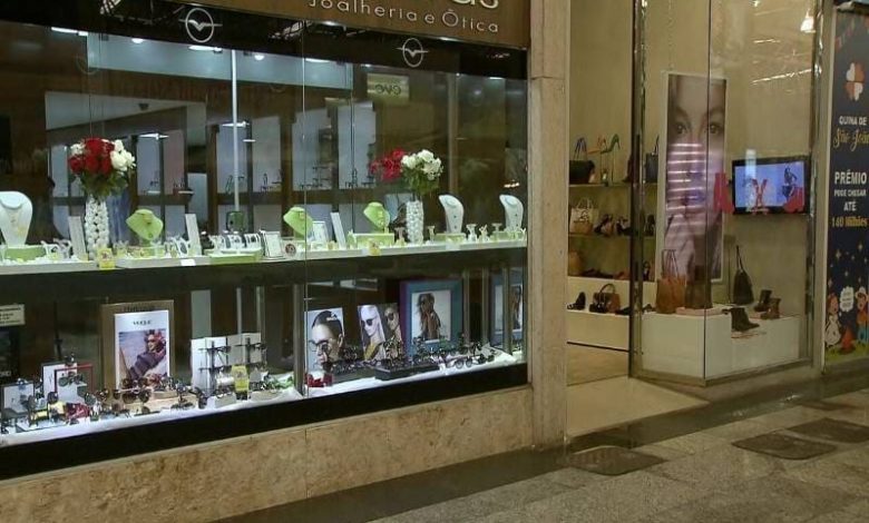 Uma joalheria foi alvo de um assalto relâmpago no quinto andar de um prédio comercial no bairro da Campina, em Belém, na quarta-feira (23). A ação durou cerca de cinco minutos e terminou com a vitrine completamente vazia.