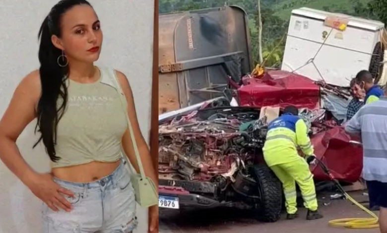Darlene da Silva Machado, de 37 anos, foi vítima fatal na colisão entre caminhonete e caminhão com semi-reboques. PRF alerta para curva perigosa na região.