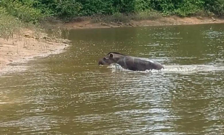 Duas antas são flagradas nadando no reservatório intermediário de Hidrelétrica no Pará