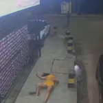 O vídeo mostra que, ao fazer uma curva na Rua Mato Grosso, a mulher abriu a porta do carro e se jogou. Com o impacto, bateu contra a grade de um estabelecimento e quase atingiu uma estrutura de concreto da calçada.