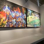 Sobre a proposta da mostra, o artista explica que “o rito religioso tem a presença forte dos povos tradicionais, como ribeirinhos, quilombolas e indígenas Borari. São traços expressivos que vão desde a colocação dos mastros até as rezas e os cantos de louvor. Já na disputa dos botos, surgem os elementos sobrenaturais, as indumentárias, as cores vibrantes e a presença dos povos tradicionais, evidentes em cada cena apresentada nas telas”.