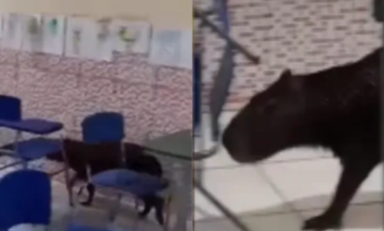 Uma capivara foi encontrada dentro de uma sala de aula em uma escola na região de Bragança, no Pará. A presença do animal foi percebida por alunos e funcionários da unidade de ensino, que comunicaram a direção.