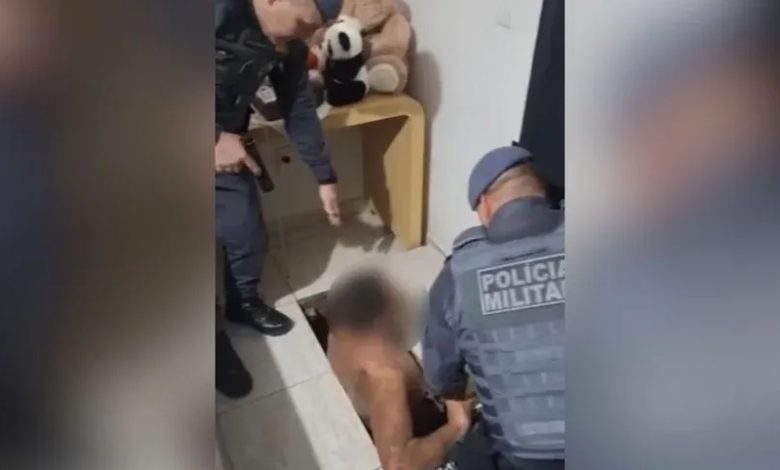 Os agentes localizaram a propriedade rural e iniciaram a vistoria. Em um dos cômodos, encontraram um piso falso e, ao removê-lo, localizaram o criminoso escondido em um “bunker” subterrâneo. Um celular e um tablet foram apreendidos.