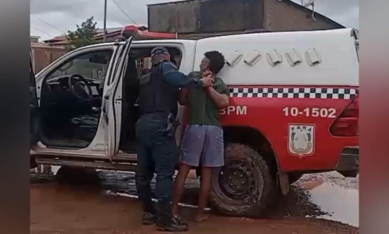 A guarnição realizou buscas nas proximidades e localizou o suspeito a cerca de duas quadras da residência onde ele havia sido encontrado inicialmente. Após a prisão, o homem foi conduzido até a 15ª DEAM para os procedimentos cabíveis.