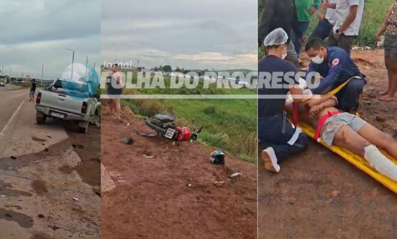 Uma camionete, conduzida por um empresário de Novo Progresso, colidiu com uma motocicleta que trafegava pela rodovia. Com o impacto, a moto saiu da pista e tanto o condutor quanto o caroneiro foram lançados ao chão.