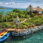 Um homem construiu uma ilha flutuante com 150 mil garrafas PET, árvores de mangue, painéis solares e água da chuva. Veja como funciona essa moradia no mar.