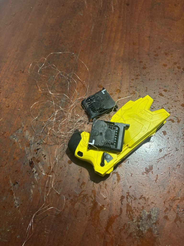 Diante da situação, os agentes utilizaram um taser (arma não letal), efetuando quatro disparos, mas sem sucesso na contenção.