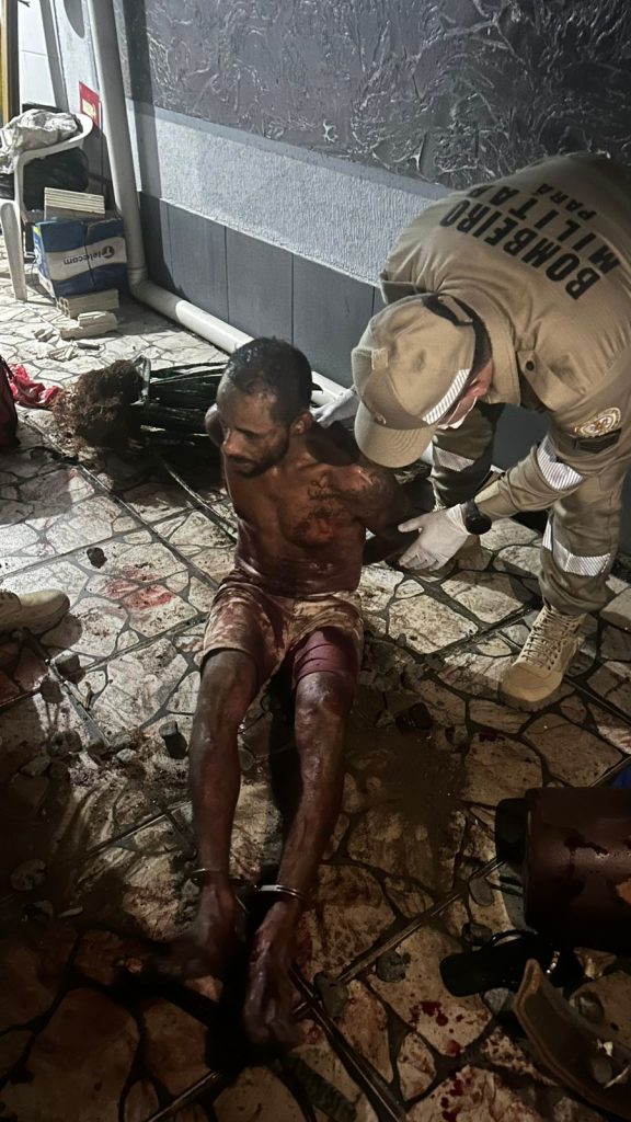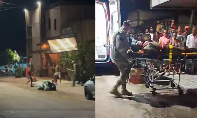 Imagens que circulam nas redes sociais mostram o indivíduo visivelmente alterado, com uma faca em mãos, discutindo e brigando com outras pessoas. Durante a confusão, ele também teria danificado um veículo na rua.