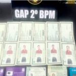 A equipe do Grupo de Apoio (GAP) fazia bloqueio quando abordou um veículo de passeio, momento em que o condutor apresentou informações contraditórias, o que levantou suspeitas por parte dos militares. No procedimento de busca pessoal, os policiais localizaram uma cédula de identidade com dados divergentes, contendo nome distinto, porém com a fotografia do abordado. Na sequência, foram encontradas outras cédulas de identidade com indícios de falsificação no console central do veículo, todas com a mesma fotografia do suspeito e com nomes diferentes.