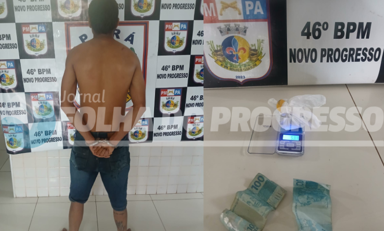 Um homem identificado como Fábio Figueredo Sinésio foi preso na manhã desta quinta-feira (16), suspeito de tráfico de entorpecentes no município de Novo Progresso.