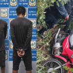 Após receber denúncias de moradores sobre um suspeito empurrando uma moto com as mesmas características nas proximidades da área, policiais iniciaram buscas e localizaram um jovem, identificado como Victor Gabriel em uma área de matagal. No local, ele teria sido flagrado tentando fazer ligação direta no veículo, que já estava sem placa e retrovisores.