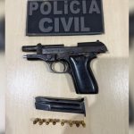 Nesta segunda-feira, a equipe policial de Trairão recebeu a informação que o suspeito estaria tentando fugir pelo porto do Distrito de Três Bueiras, razão pela qual foi montada campana no local. Assim que a embarcação aportou, foi dada voz de prisão ao investigado para cumprimento do mandado de prisão em aberto. Além disso, o suspeito também foi preso em flagrante por porte ilegal de arma de fogo de uso permitido, uma vez que o investigado portava uma pistola calibre .765, municiada com um carregador contendo oito munições intactas do mesmo calibre, possivelmente a mesma arma utilizada no feminicídio.