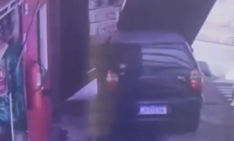 Antes de fugir, ele ainda causou danos à estrutura do estabelecimento e arrastou o portão de saída, danificando o equipamento.