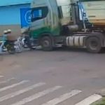 Imagens mostram colisão entre carreta e motocicleta, em Itaituba; motociclista fica ferido
