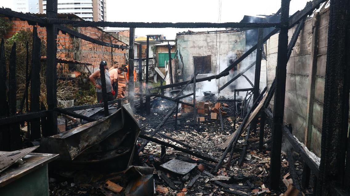 O Corpo de Bombeiros Militar do Pará foi acionado e precisou acessar o terreno por meio de uma oficina mecânica para iniciar o combate ao fogo. As três casas, construídas em madeira e localizadas no mesmo terreno, foram completamente queimadas.