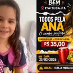 Uma campanha solidária será realizada nesta quarta-feira (25), em Itaituba, para arrecadar recursos destinados ao tratamento da pequena Ana, diagnosticada com um tumor cerebral maligno considerado altamente agressivo.
