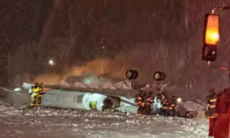 O Bombardier Challenger 600, com oito pessoas a bordo, caiu durante a decolagem por volta das 19h45, enquanto a Nova Inglaterra (região nordeste dos EUA) e grande parte do país enfrentavam uma forte tempestade de inverno. O aeroporto, localizado cerca de 320 quilômetros ao norte de Boston, foi fechado após o acidente. A queda de neve era intensa no momento.