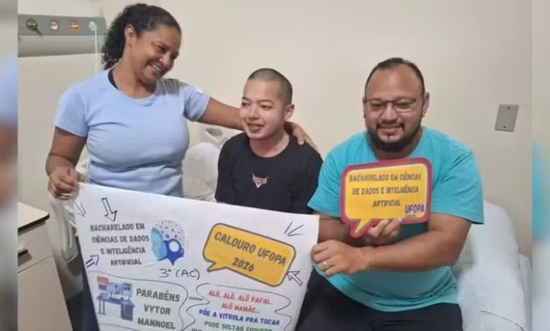O jovem Vytor Manoel Oliveira, de 20 anos, diagnosticado com cardiopatia desde os 12, passou por cirurgia para implante de um Cardioversor Desfibrilador Implantável (CDI) e, ainda internado, recebeu a notícia de que havia sido aprovado no vestibular de uma universidade federal em Santarém, no curso de Ciências de Dados e Inteligência Artificial.