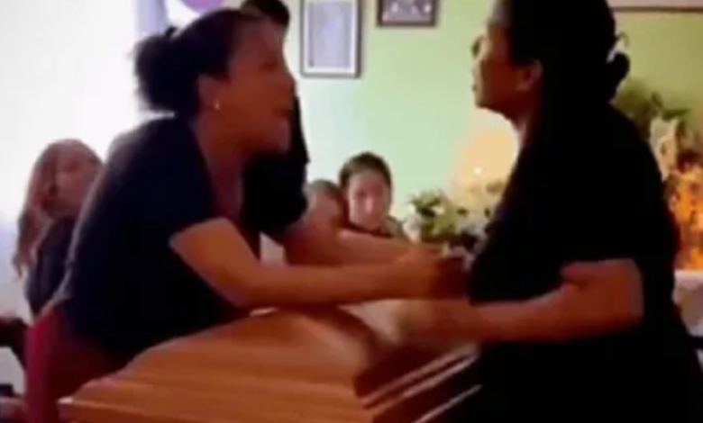 O que se viu em seguida foi uma cena de desordem total. As duas mulheres trocaram tapas, empurrões e puxões de cabelo, chegando a se atracar sobre o próprio caixão. No calor da briga, objetos da decoração fúnebre foram derrubados e a tampa do caixão chegou a ser parcialmente deslocada, expondo o corpo e aterrorizando os amigos e parentes que tentavam prestar suas homenagens.