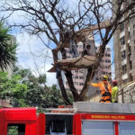 Morador de rua que morava em cima de árvore em BH é retirado pelos Bombeiros; vídeo