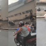 Motociclista cai sobre vítima ao parar para observar acidente em MG; vídeo