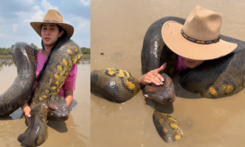 A responsável pelo registro é Daniella Villaroel (@dani.villar_), que compartilhou imagens ao lado de um exemplar da espécie Eunectes murinus, conhecida por ser a maior cobra do mundo em massa corporal. Segundo ela, o animal tinha entre cerca de 4,8 e 5,2 metros de comprimento, podendo chegar a estimativas próximas de 5,5 metros.