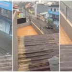 Nas imagens, é possível ver o momento em que o carro fica preso na enxurrada. Ela consegue sair do carro e um morador aparece para ajudá-la. Em seguida, outros moradores a auxiliam para retirar o veículo da rua.
