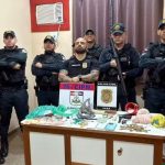Equipes das Polícias Civil e Militar foram até o local e observaram que no interior da residência, a mulher estava tentando esconder drogas dentro de brinquedos dos filhos – ursos de pelúcia. Ao observar a presença dos policiais, o companheiro da suspeita fugiu com um saco na mão com um objeto que aparentava ser uma arma de fogo.