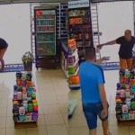 De acordo com as imagens, a suspeita entrou no estabelecimento com um saco nas mãos e passou a se abaixar na tentativa de não ser vista. Em seguida, começou a recolher produtos próximos à porta e colocá-los dentro do saco. A movimentação foi percebida pelo proprietário, que estava no balcão e correu em direção à mulher, exigindo que os itens fossem devolvidos.