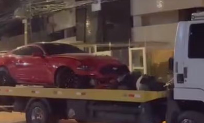 Um Mustang vermelho se envolveu em um acidente na madrugada de sábado (14), no bairro do Umarizal, em Belém.