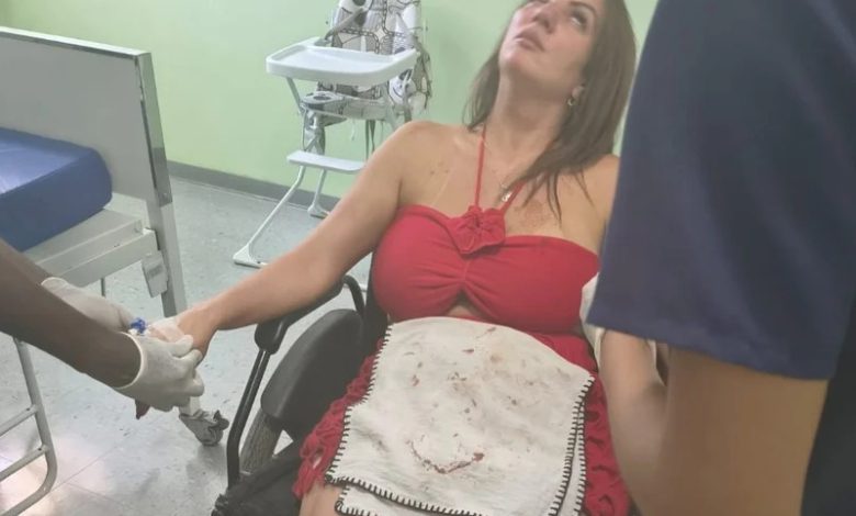 Aline sofreu lesões no nariz e na face, além de escoriações nos braços e nas pernas. Temendo novas agressões, ela conseguiu entrar em seu carro e fugir do local.