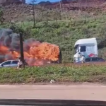 Acidente foi registrado na manhã desta sexta-feira (9), em Igarapé, na Grande BH. Motorista e passageiros conseguiram descer do veículo antes do incêndio e não se feriram.