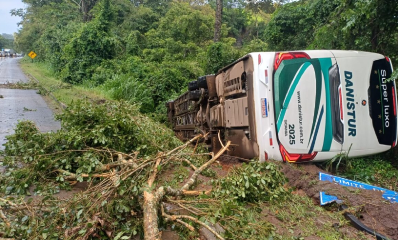 Veículo saiu de Goiânia com destino a São Félix do Xingu; acidente ocorreu durante chuva forte.