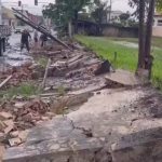Parte de muro de escola desaba durante fortes chuvas em Bragança, no Pará